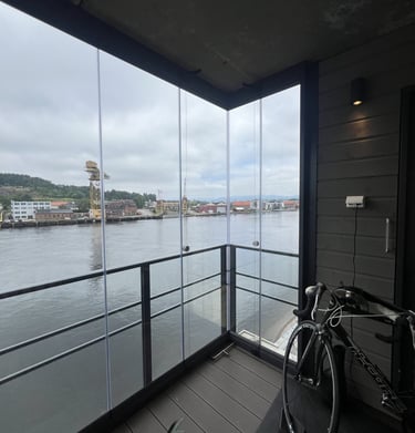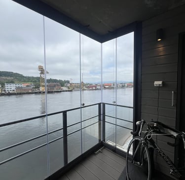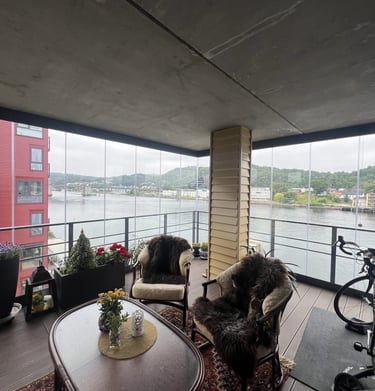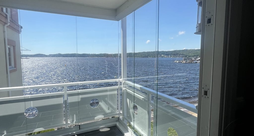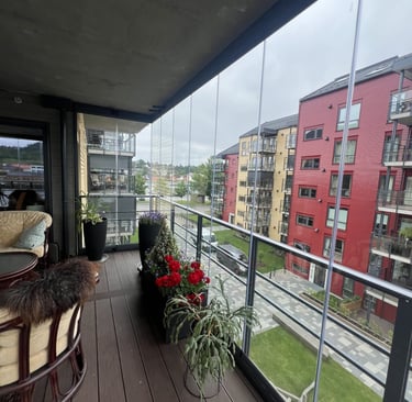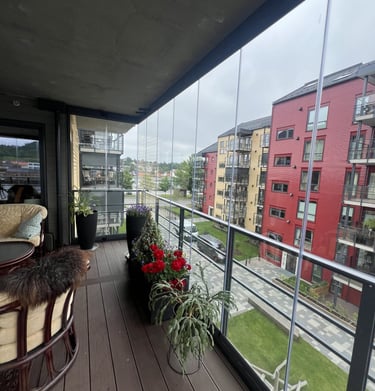 Vårt stolpefritt glassrekkverk tåler hele 2kN/m ved en høyde på 1300mm. Med dette rekkverket kan du nyte utsikten på balkongen.