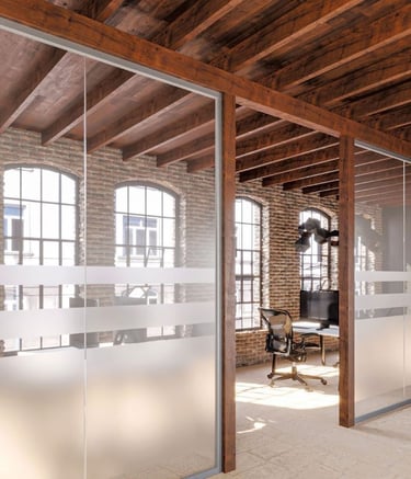 Våre produkter er perfekte for kontorbygg, blant annet på grunn av lydisolasjonen opp til Rw 47 dB. Dette er en ekstremt viktig parameter som gjør at vi kan sikre tilstrekkelig arbeids komfort. Noe som er avgjørende for slike konstruksjoner.